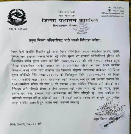 सिन्धुपाल्चोकमा निषेधाज्ञा जारी